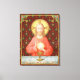 Dans cette splendide image, Jésus est assis à une table qui est fixée pour la Pâque et recouverte d'un chiffon bleu et blanc. Il est vêtu d'un vêtement rouge doux et accrocheur. C'est Maundy ou Jeudi Saint et Sa Dernière Cène avec Ses apôtres. C'est le moment où Il institue le sacrement de la Sainte Communion ou de l'Eucharistie. + La figure de Jésus est isolée d'un arrière - plan rouge foncé à motifs d'artichauts stylisés en forme de losange. L'humeur ici est solennelle. Laissant ses yeux au ciel, Jésus lève sa main droite en bénédiction. À sa gauche, Il tient une grande hôte, le pain eucharistique, sur le chalet rempli de vin. En latin, dans un banderole sous la scène, sont les mots de la consécration : "This is My Body.. This is My Blood" ("Hoc est corpus meum... Hic est sanguis meus"). En souvenir de Lui, à chaque messe, le prêtre réagit à cette action sacrée qui transforme le pain et le vin ordinaires en Corps et Sang du Christ. + Crédit d'image (SAU 045) : Impression dévotionnelle antique de Jésus Instituting the Holy Eucharist, publiée à l'origine dans la chromolithographie par la Socièté de St. Augustin, Bruges, Belgique, fin 19ème siècle, de la collection privée de l'architecte de l'éphémère religieux.