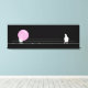 Impression de toile de pigeon ironique montrant deux oiseaux drôles sur un fil collé avec des lamelles de bubblegum mâché. Un oiseau soufflant une grande bulle rose, un autre brandissant la gomme. Modifiez pour changer l'arrière - plan noir en couleur de votre choix. ♡ Idyllfire