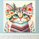 Toile Joli Chat Aquarelle Florale
