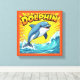 Un adorable tableau pour la chambre d'un enfant. Un mignon dauphin de dessin animé sautant de l'océan turquoise vagues pop art illustration.
