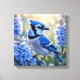 Un beau mur à thème d'oiseau. Front a une illustration d'une jolie Jay Bleue assise sur une branche lilas.