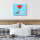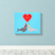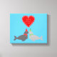 Cette impressionnante impression de toile comporte une paire de phoques romantiques qui s'embrassent. L'un est gris clair et l'autre gris foncé. Le gris clair porte une écharpe verte et un casquette, et le gris foncé, une écharpe rouge et un casquette. Au-dessus des phoques se trouve une paire de sucres de canne rouges et blancs en forme de coeur, entourant un coeur rouge avec un texte blanc à l'intérieur qui dit "Scellé par un baiser de Noël. Un joli design pour Noël et pour les couples qui passent leur premier Noël ensemble.