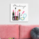 Destei's mignon dessin de maquillage comme rouge à lèvres, mascara, brosse à poudre, poudre, vernis à ongles et plus encore avec une zone de texte personnalisable qui se lit maintenant "maquillage". La couleur arrière - plan est blanche et elle a un beau motif damassé gris clair. Ce joli imprimé pourrait s'adapter sur les murs d'un salon de beauté, d'un studio d'ongles, d'une boutique de mode ou dans la maison de quiconque aime simplement leur maquillage.