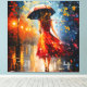 Entrez dans un monde où les couleurs vibrantes dansent au rythme des pluies, capturant l'essence d'un moment dans le temps. Dans cette scène fascinante, une figure navigue gracieusement à travers la pluie, enveloppée d'un kaléidoscope de teintes qui illuminent la toile.