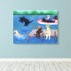 Happy Lake Fun Labradors Canvas Imprimer. Black Labrador and Chocolate Labrador and Yellow Labradors sont inclus dans le tableau. La famille Labrador et leurs amis vont au camp au lac. Amusez-vous. Peinture d'été du Labrador Whimsical et drôle peinte par Naomi Ochiai. Idéal pour les amoureux de les chiens qui aiment Labradors.