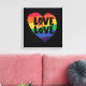 Cette oeuvre comporte l'expression "L'amour est amour" conçue dans un coeur arc-en-ciel coloré.