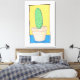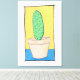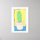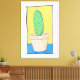Cette toile étirée a une composition artistique collective d'un seul cactus lobé dans un pot à fleurs. L'arrière - plan est jaune et bleu, le pot est beige rose et le cactus est très vert et épicé, le tout contenu dans une mince bordure noire, avec un entourage blanc. L'oeuvre est dessinée à la main à l'aide d'aquarelles, de stylo et d'encre. Il est unique à l'Art d'être Beth à Zazzle.