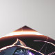 Une mystérieuse créature à capuchon de félin aux yeux violets brillants et aux griffes acérées s'accroche au-dessus d'une structure en ruines, au milieu d'un étalement urbain sombre et néon. Son costume élégant et blindé, accentué d'éléments brillants, suggère un mélange formidable de furtivité et de puissance. Sur fond d'anneau colossal, lumineux et de corps cosmiques lointains, elle incarne un énigmatique prédateur nocturne, un gardien ou un voyou dans un monde où la magie rencontre la technologie