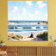 Cette scène paisible montre une femme qui est seule sur la plage et qui regarde la mer. Les vagues roulent doucement sur la côte sous un air bleu avec des nuages sombres. Les dunes encadrent l'horizon, une atmosphère intime et sereine de cette jolie terrasse de plage. Elle rêve de l'avenir et réfléchit à sa vie, peut-être en profitant d'un moment de tranquillité et d'évasion de l'agitation quotidienne. Ses pensées se détournent vers des endroits lointains et de nouvelles aventures, tout en laissant entrer en jeu l'influence apaisante de la mer.