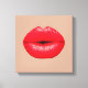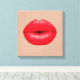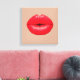 Une image pop Art de cramoisis rouge vif lèvres s'agitant pour un baiser contre un arrière - plan de couleur café. Ce design s'inspire de l'art pop, de l'art moderne, de l'art graphique, de la culture hipster et est sûr d'être une pièce de déclaration dans votre maison