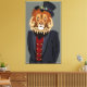 Ce design présente le portrait d'un lion dans le costume d'homme d'affaires et le casquette.