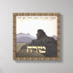 Un lion silhouetté contre les montagnes d'Israël. L'image est dans les tons de terre. Psaumes 113:3 apparaît en hébreu et en anglais. Le Talmud établit la règle selon laquelle si l'on prie dans la diaspora, il se dirigera vers la Terre d'Israël. La plupart des juifs de la diaspora vivent à l'ouest de Jérusalem, ils sont donc confrontés à l'est (le "mizrach" hébreu) pendant la prière. Le mot "mizrach" fait également référence au mur de la synagogue qui fait face à l'est, où des sièges sont réservés au rabbin et à d'autres dignitaires. En outre, "mizrach" désigne une plaque murale ornementale utilisée pour indiquer la direction de la prière dans les maisons juives. La coutume est basée sur la prière de Salomon (I rois 8:33, 44, 48; II Chrétien. 6:34). Un autre passage soutenant cette règle se trouve dans le Livre de Daniel, qui se rapporte à celui de la chambre haute de la maison, où Daniel priait trois fois par jour, dont les fenêtres étaient ouvertes vers Jérusalem (Dan 6:10). Le Tosefta exige que l'entrée de la synagogue soit du côté est avec la congrégation face à l'ouest. L'exigence est probablement basée sur l'orientation de la tente de réunion, qui avait ses portes sur le côté est (Num. 2:2-3; 3:38), ou Temple de Salomon, dont les portails étaient à l'est (Ezek. 43:1-4). Maimonides a tenté de concilier la disposition de la Tosefta avec l'obligation de prier vers Jérusalem en déclarant que les portes de la synagogue doivent faire face à l'est, tandis que l'Arche doit être placée "dans la direction dans laquelle les gens prient dans cette ville", c'est-à-dire vers Jérusalem. Le Shulkhan Arukh enregistre la même règle, mais il recommande aussi qu'on se tourne vers le sud-est plutôt que vers l'est pour éviter le semblant d'adorer le soleil. Si une personne est incapable de déterminer les points cardinaux, il doit diriger son coeur vers Jérusalem. Il est d'usage dans les maisons traditionnelles juives de marquer le mur en direction de mizrah pour faciliter la prière correcte. A cette fin, les gens utilisent des plaques murales artistiques inscrites avec le mot mizrah et des passages scripturaires comme "De la montée (mi-mizrah) du soleil jusqu'à sa descente, le nom du Seigneur doit être loué" (Ps 113, 3), des inscriptions kabbalistes, ou des images de lieux saints. Ces plaques sont généralement placées dans les pièces où les gens prient, comme le salon ou les chambres.