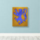 Ce dessin de Richard H. Fay présente un azure rampant de lion héraldique, un lion bleu dépeint en profil remontant sur ses pattes arrières, prêt à déjouer tous les agresseurs.