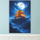 Journey to a world where ancient legends reside. This stunning artwork features a radiant, traditional Chinese pavilion crowning a misty mountaintop. The rich, golden glow of the palace contrasts beautifully with the deep azure sky, twinkling stars, and the dramatic light of the supermoon. Perfect for those who love fantasy, Asian art, and dramatic nightscapes.