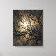 Cette impression de toile enveloppée présente un ciel nocturne mystique. L'air est imprégné de brume. La pleine lune qui brille à travers les arbres illumine les nuages brumeux dans les tons or, jaune orange, blanc et marron et forme un motif abstrait intéressant.