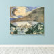 Moon Over Barcelona (1924) de Walter Gramatte est une peinture de paysage expressionniste vintage. La belle ville espagnole de Barcelone, en Espagne la nuit avec un ciel nuageux et une pleine lune. La lune se reflète dans l'eau de l'océan et la colline est parsemée d'arbres, de bâtiments, de maisons et d'habitations.