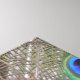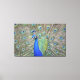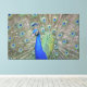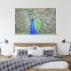 Cette toile est ornée d'un beau paon montrant ses plumes.
