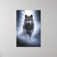 A powerful canvas print featuring a majestic grey wolf emerging from dense fog, standing tall with a calm, intense gaze. Soft mist, cool tones, and cinematic lighting create an atmosphere of introspection, strength, and silent leadership. Perfect wall art for a living room, office, or premium gift.