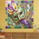Toile Mardi Gras Masque de plumes vert et doré