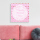 Cette impressionnante impression de toile est destinée aux jeunes mariés. La décoration est composée d'un motif de jolies fleurs de cerisiers roses, également appelé Sakura et Japan. Elles sont un symbole du printemps et sont idéales pour un mariage de printemps. Ils sont mélangés avec des paires de cerises rouges brillantes mûres. Il y a un cercle rose pâle avec des motifs marbrés blancs qui contient du texte personnalisable pour que vous puissiez inclure tous les détails importants.