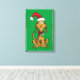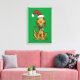 This adorable illustration features Max the Dog sitting patiently, fully embodying the holiday spirit—even if he looks slightly confused by it all! He is dressed in a floppy red Santa hat and a chunky red collar, which is charmingly adorned with a green Christmas ornament. Max's classic, expressive eyes and loyal posture make this image the perfect, heartwarming graphic for anyone who loves the true hero of the Grinch story!