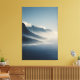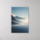 Layered mist wraps rugged coastal mountains in deep indigo, slate, and cool blue tones, softening sharp peaks and blending into a glassy ocean below. Soft peach, rose, and pale gold sunrise light gently warms the lowest clouds and distant ridges, creating a serene, expansive atmosphere of quiet renewal, solitude, and timeless natural beauty. Ideal for meditation rooms, bedrooms, home offices, therapy spaces, minimalist living areas, coastal-inspired bathrooms, or as calming gifts for anyone seeking peace, mindfulness, nature connection, or daily inspiration from vast, tranquil landscapes.