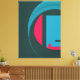 A bold geometric abstract composition featuring sweeping teal arcs, a vivid magenta semicircle, and a clean aqua block form. Printed on premium canvas and ideal for modern homes, creative studios, and contemporary interiors.