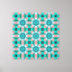 This design features a mesmerizing, intricate geometric lattice pattern reminiscent of Moroccan tiles, modern kaleidoscopes, or Mediterranean mosaics. The vibrant color palette combines refreshing Aqua/Teal, Coral Pink/Salmon, deep Navy Blue/Black, and touches of rich Red, creating a bold, lively, and sophisticated look.