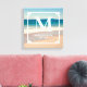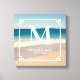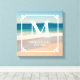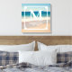 Créez votre propre œuvre d'art de mariage personnalisée sur toile carrée avec une photo de plage et un monogramme.