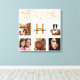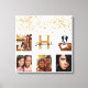Un cadeau unique ou un plaisir pour vous de célébrer sa vie avec un collage de 5 de vos propres photos, photos. Personnalisez et ajoutez une lettre monogramme. Une arrière - plan blanche design. Décoré avec de la poussière de parties scintillant en faux or. Le nom est écrit avec un script de style moderne écrit à la main.