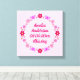Cette impression sur toile présente une image d'art numérique représentant un groupe de fleurs et de papillons, chacun d'une nuance de rose pour représenter une petite fille. Les fleurs comprennent des dahlias, des nénuphars, des myosotis et des chrysanthèmes.