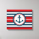 Design nautique avec décoration d'ancre en forme ronde sur arrière - plan rayé rouge, bleu et blanc