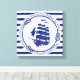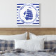 Emblème bleu nautical with sailing ship on striped background © and® Bigstock® - All Rights Reserved.