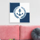 Nautical themed design with anchor and laurel wreath decoration over blue and white geometric background