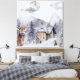 Des dessins d'aquarelle de la nature, du bouc d'ibex et du renard, et de la neige sont tombés dans la forêt et la montagne