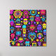 Toile Neon Doodle Faces - Motif d'art de rue animé