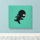 Un mignon dessin animé en ninja habillé en noir court alors qu'il tient une étoile au lancer.