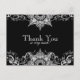 COLLECTION DESIGN : Ces cartes postales font une option très classe, verte et élégante pour vos cartes de notes de remerciements. C'est une collection de Faire-part de mariage vraiment élégante et sophistiquée avec un style vintage moderne et formel ! Montrée ici en blanc sur noir, l'invitation a une apparence élégante et spectaculaire. Pour une belle touche de finition sélectionnez l'enveloppe d'invitation correspondante du même design. Il s'agit d'une oeuvre d'Audrey Jeanne Roberts, créée à partir d'éléments décoratifs d'une imprimante gravée vintage, qui ont été créés dans un motif damassé. Il y a des cartes de réponse RSVP, des invitations à la réception, le programme de mariage, des instructions de conduite, les cartes d'hébergement de l'hôtel, l'affranchissement, des autocollants et plus encore disponibles pour correspondre. S'il y a un produit que vous voudriez avoir créé qui n'est pas offert juste message nous!