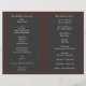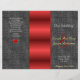 Brochure pour le programme de mariage en toile noire et satin rouge à zazzle.co.uk/datesdujour. Ce flyer de programme de mariage est conçu pour être plié en deux, ce qui fait 4 pages avec les détails de la cérémonie Mariage et de la fête de mariage à l'intérieur sur les pages 2 et 3.