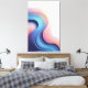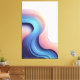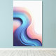 L'image présente un design abstrait visuellement frappant composé d'une série d'ondes continues et lisses qui créent une illusion de mouvement. Ces ondes sont superposées dans un spectre de couleurs, passant des tons cool aux tons chauds. Les couleurs vont du bleu profond et du violet au fond, en passant par le bleu plus clair, le vert, le rose, et enfin, les teintes plus chaudes de pêche et de rose clair au sommet. Le motif d'onde est placé contre un arrière - plan de dégradé pâle qui complète le design sans l'écraser. L'effet global est celui de la fluidité et de l'harmonie dans la progression des couleurs.