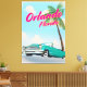 Orlando Florida belle affiche de voyage de style vintage d'une vieille voiture rétro et un palmier.