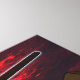 Une représentation allégorique de la Pâque. Alors que le ciel rouge du coucher du soleil présage de la tragédie qui allait bientôt arriver aux Egyptiens, le bras de Moshe retient son bâton derrière les pyramides, en promettant l'exode qui se produira cette nuit-là. Customisez en ajoutant votre propre texte. Les rayures bleues et blanches de la manche de Moshe évoquent l'uniforme carcéral de ceux détenus dans les camps de concentration de l'Holocauste.