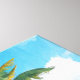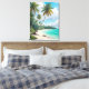 Idyllic oil painting of pristine tropical beach with tall palm trees and crystal turquoise waters. Perfect paradise art for creating peaceful, vacation-inspired spaces with natural beauty.
