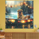 Jetez un coup d'oeil à la magie de la saison des Fêtes avec cette illustration magnifiquement détaillée, montrant un chien fier assis dans un bateau à la décoration festive, glissant à travers un lac serein de Noël. Les lumières scintillantes des pins voisins se reflètent dans l'eau, projetant une lumière chaude et festive qui renforce l'ambiance cosy. Des ornements pendent des côtés du bateau, tandis que des lanternes brillantes éclairent le chemin, créant une scène qui capture l'essence véritable de la chaleur et de la joie de Noël. Cette oeuvre nostalgique apporte une touche de magie de vacances à tout espace, parfait pour ceux qui chérissent l'esprit de la saison.