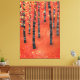 Peinture d'un bouleau ou d'une forêt de trembles à l'automne. Bois rouge, orange et jaune semi-abstrait.