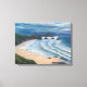 Le tableau représente une journée brumeuse et nuageuse sur la côte avec les vagues rythmées qui se jettent sur la plage.