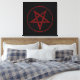 Pentagramme rouge, inversé, texturé en cercle, sur arrière - plan noir. Symbole occulte 666