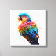 Il s'agit d'un perroquet vibrant et brillant avec un mélange fascinant de couleurs. Ses plumes sont un mélange de bleus profonds, de rouges enflammés, d'oranges lumineuses et de verts luxuriants, créant un effet radiant, presque magique. Le bec de l'oiseau est un teint doux et naturel, qui contraste magnifiquement avec son plumage lumineux. De petites particules brillantes et des étincelles entourent le perroquet, lui donnant une aura éthérée, semblable à un imaginaire. L'esthétique générale est une fusion de réalisme et d'art numérique, qui lui donne l'air d'une créature d'une jungle féerique et enchantée.