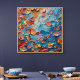 The composition balances chaos and elegance. Each petal-like form appears spontaneous, yet together they form a harmonious rhythm that guides the eye across the artwork. The contrast between cool blues and warm floral tones creates energy and visual depth, evoking feelings of movement, freedom, and natural beauty interpreted through a modern abstract lens.