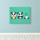 Trois adorables petits pandas assis les uns à côté des autres. Un heureux panda porte un tee - shirt avec "I heart panda" écrit dessus. Un autre propose un bâton de bambou vert à un troisième panda qui s'est endormi.